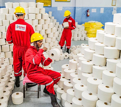 KVTMPL manufactures yarn and stocks it in different categories like cones and hanks to be packed in categories like cartons, bags and pallets.